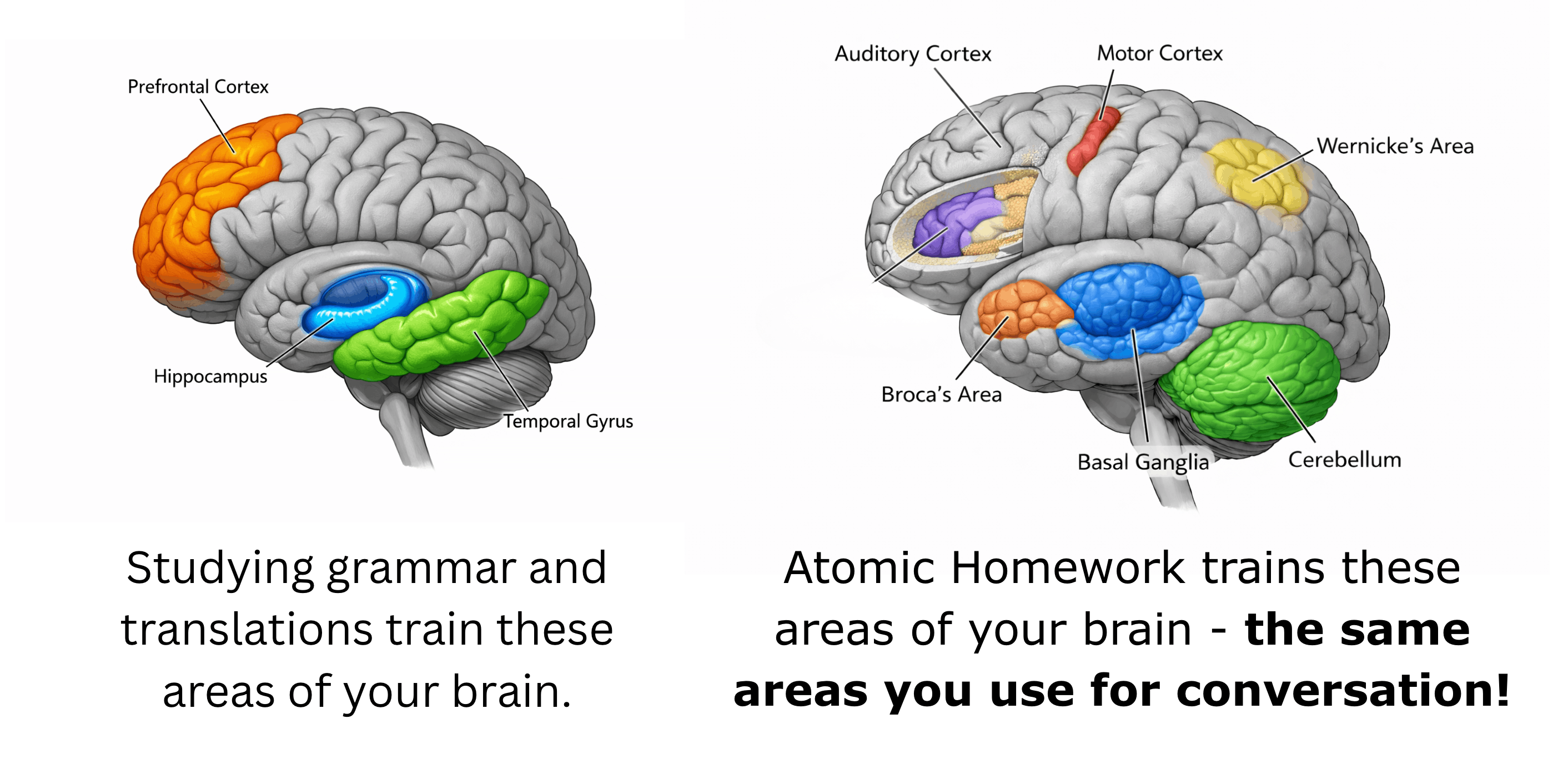 Train The Speaking Brain: Each lesson trains the areas of your brain you need for speaking