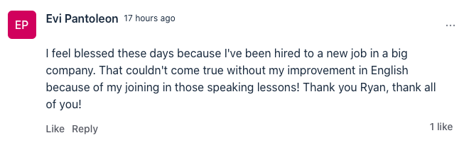 I had the opportunity in my office to participate in a higher management meeting with three foreigners. When I talked to them I realized, Wow, I already improved my speaking!