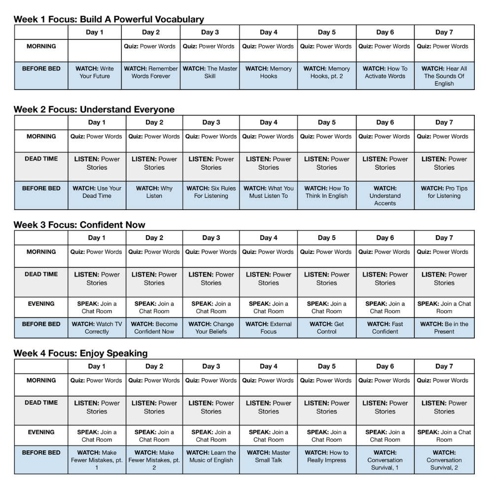 28 video trainings that will give you a step-by-step plan and daily instructions for faster fluency