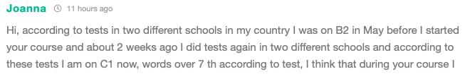 "I'm so pleasantly surprised by my progress, that I don't know what could I say. The most important thing for me is that I found out a new many different and amazing way of learning English and I like it. It's fun, untraditional and it works. I have new habits that make me feel confident and disciplined about learning."
