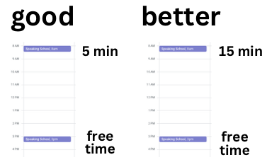 Inside Speaking School, you will NOT memorize translations and definitions (that's the test method). Instead, you practice remembering words so you can use them correctly in your next conversation.